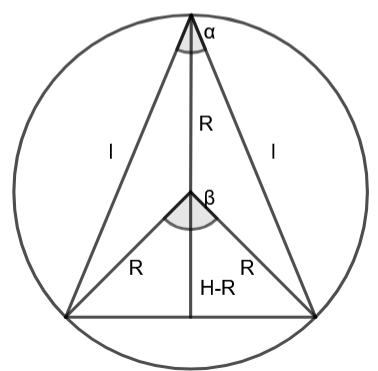 Oblicz cosinus kąta rozwarcia stożka, jeśli w kulę o promieniu R wpisano stożek o wysokości H, gdzie