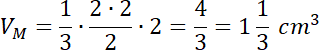 Wyznacz pole powierzchni całkowitych i objętości otrzymanych w ten sposób wielościanów, jeśli sześcian o krawędzi 4 cm przecięto płaszczyzną przechodzącą przez środki krawędzi wychodzących z jednego wierzchołka.