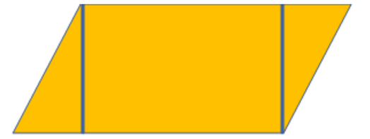 Podziel równoległobok na dwa jednakowe trójkąty i jeden prostokąt.