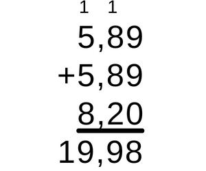 Dodaj do siebie ceny za każdy produkt, a następnie porównaj ten wynik z liczbą 20. Wykonując dodawanie pisemne, najpierw należy w słupku dodać do siebie cyfry ze słupka znajdującego się najbardziej z prawej. Jeśli otrzymana liczba jest dwucyfrowa, należy cyfrę jedności takiego wyniku zapisać pod słupkiem cyfr jedności, a cyfrę dziesiątek z wyniku trzeba przenieść dalej poprzez dopisanie tej cyfry nad kolejnym w lewo słupkiem. Przy dodawaniu kolejnego słupka, do wyniku należy dodać przeniesioną cyfrę ze słupka wcześniej. W taki sam sposób należy dodawać każdy kolejny słupek, zaczynając od lewej i idąc do prawej. Jeśli w ostatnim słupku wyjdzie liczba większa od 10, to już nie wolno przenosić dalej, bo nie ma kolejnego słupka, lecz należy napisać całą liczbę. Porównując liczby, najpierw patrz na ich całości. Liczba z większą liczbą całości jest większa.