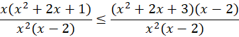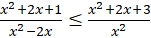 Wyznacz dziedzinę, wiedząc, że mianownik musi być różny od zera. Pomnóż obie strony przez kwadraty mianowników, przenieś na jedną stronę nierówności i rozłóż wielomian na czynniki. Narysuj otrzymaną funkcję i znajdź rozwiązanie, uwzględniając dziedzinę.