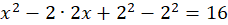 Zapisz 4 jako iloczyn 2 i 2, dodaj i odejmij