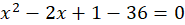 Zapisz -35 jako 1-36, skorzystaj ze wzoru skróconego mnożenia