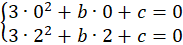 Podstaw 0 i 2 do równania pod x i ułóż układ równań: