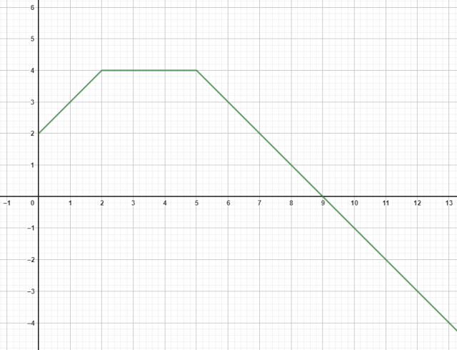Musisz narysować podaną funkcję rozłożoną na częściowe wykresy funkcji liniowych oraz określić jej dziedzinę na podstawie przedziałów oraz zbiór wartości na podstawie narysowanego wykresu.