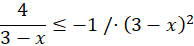 Znajdź dziedzinę, wiedząc, że mianownik musi być różny od zera. Przemnóż całą nierówność przez kwadrat mianownika, przenieś na jedną stronę i rozłóż wielomian na czynniki. Narysuj wzór otrzymanej funkcji i uwzględniając założenia, znajdź rozwiązanie nierówności.