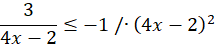 Znajdź dziedzinę, wiedząc, że mianownik musi być różny od zera. Przemnóż całą nierówność przez kwadrat mianownika, przenieś na jedną stronę i rozłóż wielomian na czynniki. Narysuj wzór otrzymanej funkcji i uwzględniając założenia, znajdź rozwiązanie nierówności.