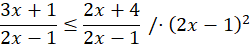 Znajdź dziedzinę, wiedząc, że mianownik musi być różny od zera. Pomnóż obie strony nierówności przez kwadraty mianowników, przerzuć całość na jedną stronę i rozłóż wielomian na czynniki. Narysuj otrzymaną funkcję, odczytaj rozwiązanie i uwzględnij w nim dziedzinę.