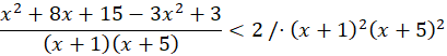 Wyznacz dziedzinę, wiedząc, że mianownik musi być różny od zera. Pomnóż obie strony przez kwadraty mianowników, przenieś na jedną stronę nierówności i rozłóż wielomian na czynniki. Narysuj otrzymaną funkcję i znajdź rozwiązanie, uwzględniając dziedzinę.