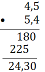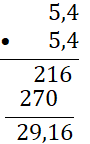Wstawiamy liczbę 5,4 do równania, obliczamy prawą stronę i sprawdzamy, czy jest równa prawej. W mnożeniu podpisujemy liczby od prawej, a w końcowym wyniku wstawiamy przecinek po tylu cyfrach, ile było w sumie cyfr po przecinku w mnożonych.