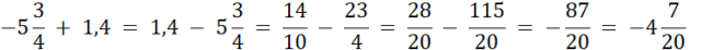 Dodawanie liczby ujemnej możemy zastąpić odejmowaniem jej wartości bezwzględnej. Żeby dodać lub odjąć ułamki sprowadzamy je do wspólnego mianownika, zamieniamy na ułamek niewłaściwy i odpowiednio dodajemy lub odejmujemy.