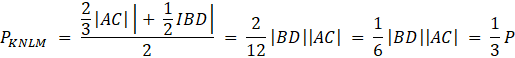 Oblicz pole czworokąta KLMN wiedząc, że pole rombu wynosi P.