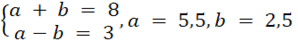 Sznurek o długości 8m podzielono na dwa kawałki, dłuższy miał a metrów, a krótszy - b metrów. Długości tych kawałków różniły się o 3 m.