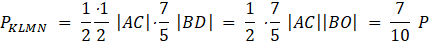 Oblicz pole czworokąta KLMN wiedząc, że pole rombu wynosi P.