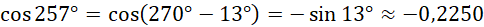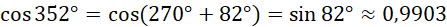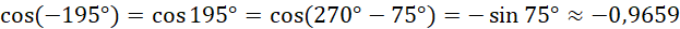W tym zadaniu musisz policzyć ile wynoszą cos (–195°), cos 257°, cos 352°, korzystając z tablic trygonometrycznych.
