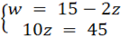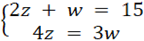 Zapałka ma długość z cm, a wykałaczka — w cm. Dwie zapałki i jedna wykałaczka mają łączną długość 15 cm, a cztery zapałki mają taką samą długość jak trzy wykałaczki