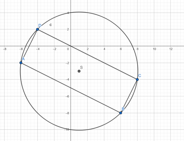 Przekątna prostokąta jest średnicą okręgu opisanego na prostokącie, a jej środek jest środkiem okręgu.