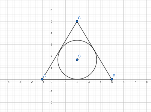 Zapisz równanie okręgu wpisanego w trójkąt równoboczny o punktach o podanych współrzędnych.
