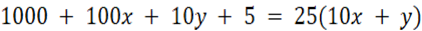 W tym zadaniu należy określić liczbę dwucyfrową, do której z lewej strony dopisano 1 a z prawej 5, po czym otrzymano liczbę 25 razy większą.