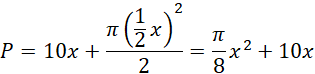 Pole całej figury to suma pola prostokąta oraz połowy pola okręgu o promieniu