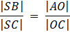 Trójkąty SBC i OAC są podobne na mocy cechy KKK: