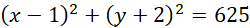 Skorzystaj ze wzoru na długość odcinka. Wyznacz wartość promienia. Zapisz równania okręgów.