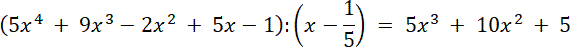Wykonaj dzielenie schematem Hornera, w pierwszym wierszu wpisz kolejno współczynniki wielomianu, w drugim
