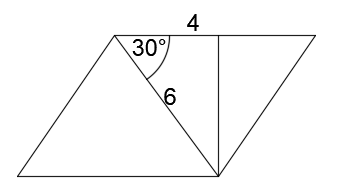Dany jest równoległobok o boku długości 4 i przekątnej 6. Kąt między nimi ma miarę 30°. Oblicz pole tego równoległoboku.