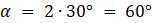 Zauważ, że po prowadzeniu wysokości powstają dwa trójkąty typu 30°, 60°, 90°. Kąt środkowy ma miarę.