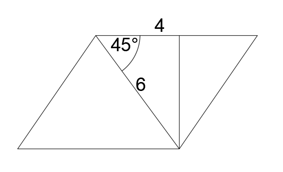 Dany jest równoległobok o boku długości 4 i przekątnej 6. Kąt między nimi ma miarę 45°. Oblicz pole tego równoległoboku.