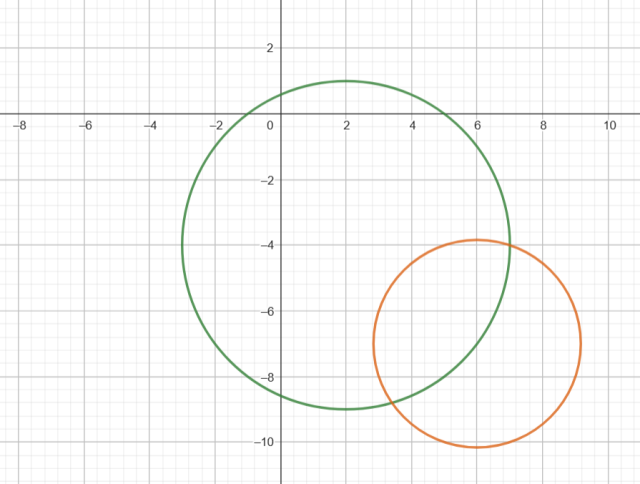 Narysuj podane okręgi, aby sprawdzić w jakiej są one relacji względem siebie.