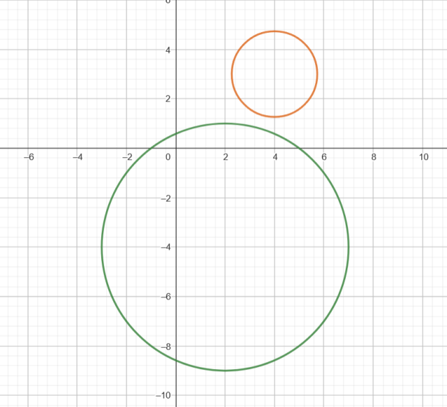 Narysuj podane okręgi, aby sprawdzić w jakiej są one relacji względem siebie.