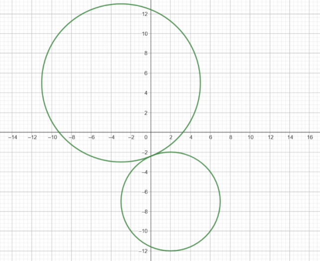 Narysuj podane okręgi, aby sprawdzić w jakiej są one relacji względem siebie.