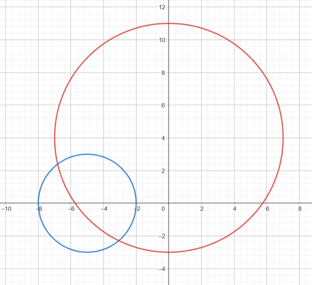 Narysuj podane okręgi, aby sprawdzić w jakiej są one relacji względem siebie.
