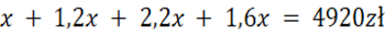 Zapisujemy dane warunki w postaci równania, które następnie rozwiązujemy: