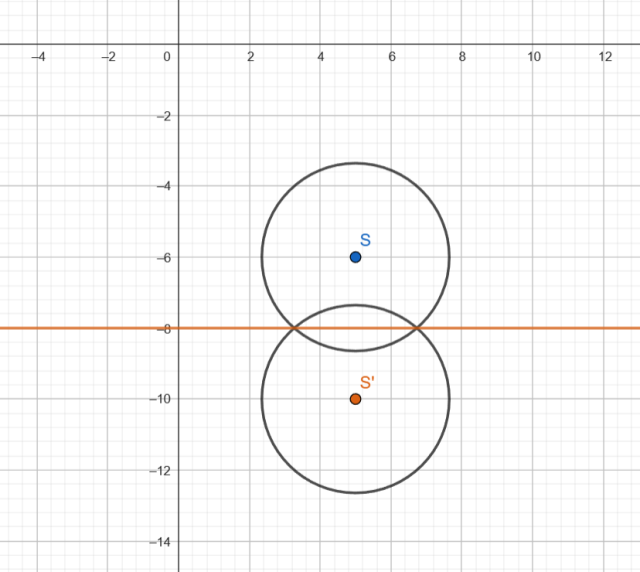 Znajdź punkt S symetryczny względem prostej l, a następnie wyznacz okrąg o tym samym promieniu, co pierwotny okrąg.