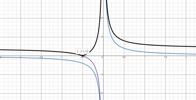 Na rysunku szukany wykres to szary. Otrzymaliśmy go z początkowej funkcji