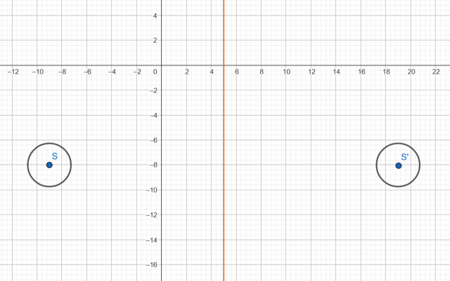 Znajdź punkt S symetryczny względem prostej l, a następnie wyznacz okrąg o tym samym promieniu, co pierwotny okrąg.