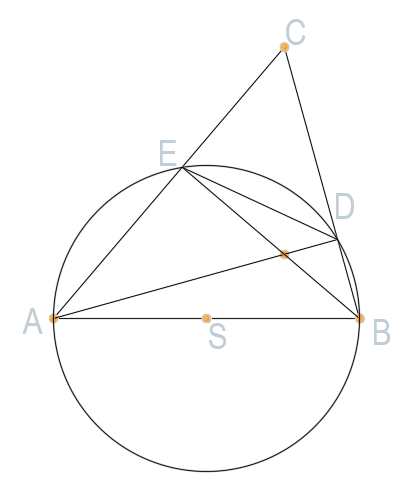 Punkty A, B, D, E leżą na tym samym okręgu.