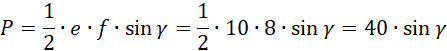 W tym zadaniu musisz policzyć, dla jakiego kąta między przekątnymi równoległoboku mającymi 10 cm i 8 cm pole tej figury jest największe.