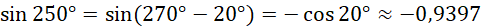 W tym zadaniu musisz policzyć sin 250°, cos 185°, tg 203°, używając wzorów redukcyjnych i tablic trygonometrycznych.
