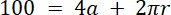 Drut długości 100 cm podzielono na dwie części: z jednej zbudowano kwadratową ramkę, z drugiej okrąg. W tym zadaniu musisz napisać jaka powinna być długość każdej części, aby suma pól figur ograniczonych drutem była najmniejsza.