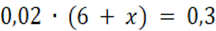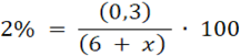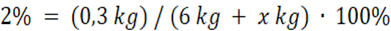 Teraz, chcemy otrzymać solankę dwuprocentową (2% soli), ale ilość soli ma pozostać taka sama (0,3 kg). Przyjmijmy, że dolewamy x kg wody do solanki.