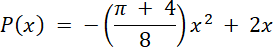 Okno ma kształt prostokąta zakończonego na górze półkolem, jak na rysunku obok. Obwód okna ma 4 m. W tym zadaniu musisz obliczyć długość podstawy prostokąta przez x i napisać wzór funkcji pola P powierzchni okna w zależności od x.