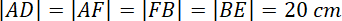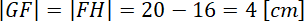 Korzystając z długości odcinka DE wyznaczam długości odcinków AG i BH: