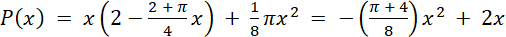 Okno ma kształt prostokąta zakończonego na górze półkolem, jak na rysunku obok. Obwód okna ma 4 m. W tym zadaniu musisz oznaczyć długość podstawy prostokąta przez x i wyznaczyć długość podstawy prostokąta tak, aby pole powierzchni okna było największe.