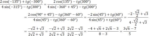Skorzystaj ze wzorów redukcyjnych i oblicz wartości poszczególnych funkcji trygonometrycznych.