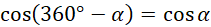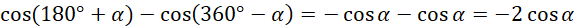 W tym zadaniu musisz zapisać w jak najprostszej postaci wyrażenie cos (180° + α) – cos (360° – α).