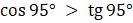 Funkcja cosinus w przedziale (0°, 90°) jest malejąca, natomiast tangens jest rosnąca, więc: