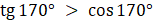 Funkcja cosinus w przedziale (0°, 90°) jest malejąca, natomiast tangens jest rosnąca, więc: